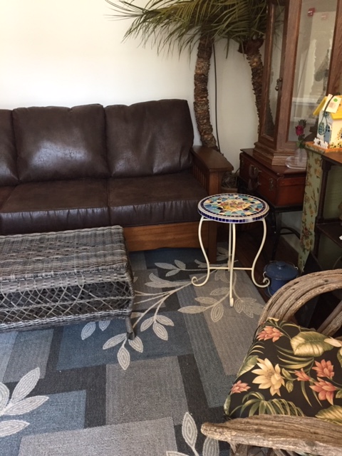 I considered swapping it out with a leather couch that’s in my late husband’s mancave, but the logistics and time involved (for reasons too boring to describe here), were too much for an already over-scheduled life.
